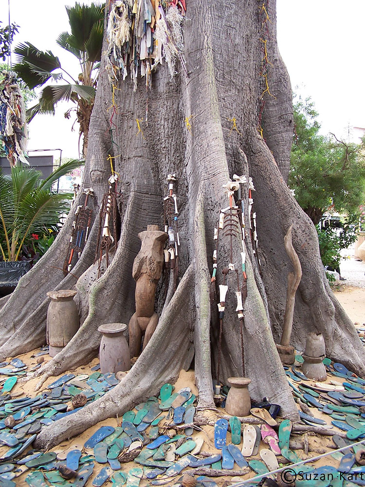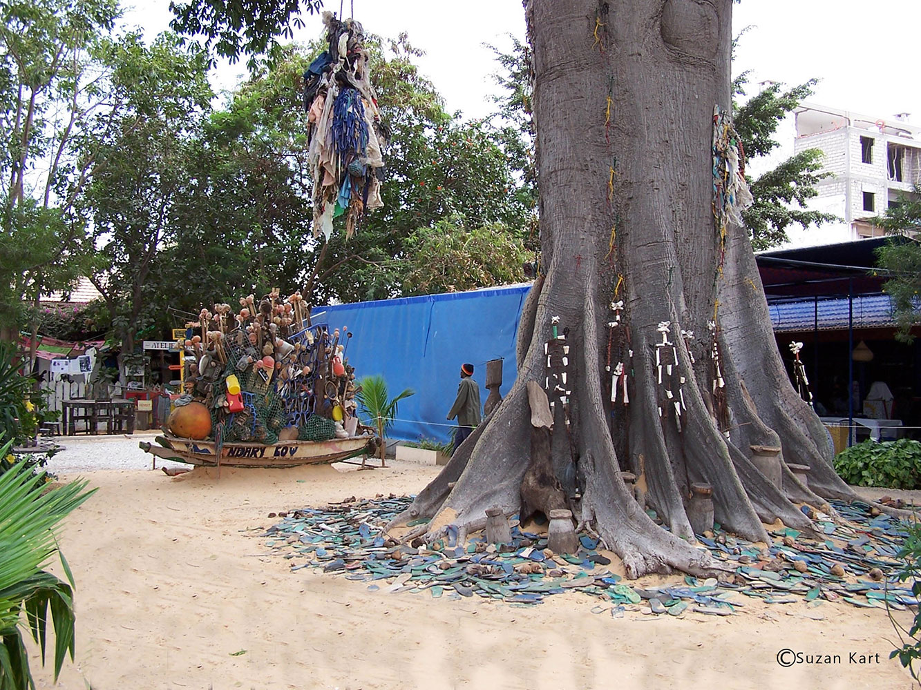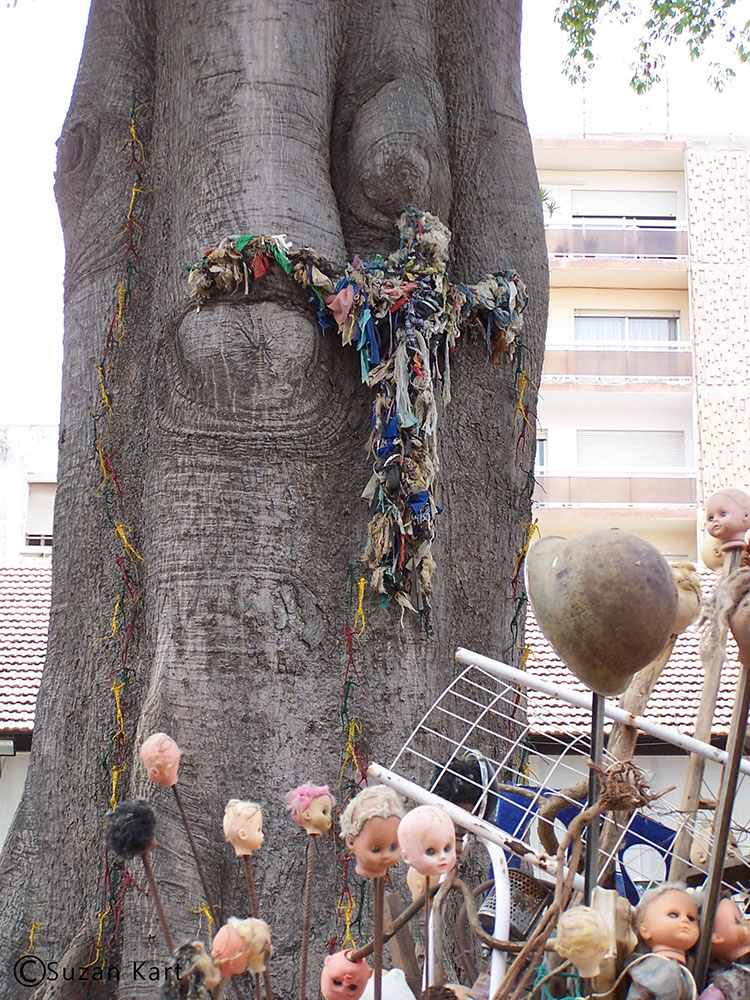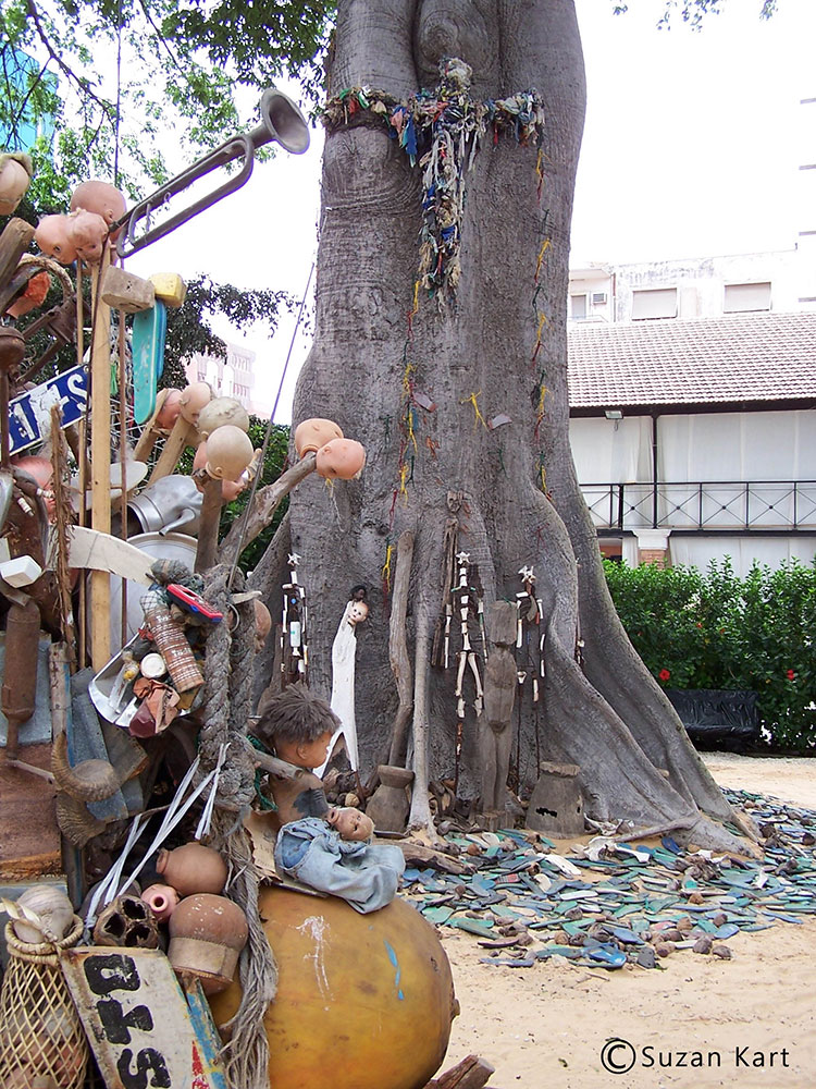 • la croix accrochée dans le flamboyant, qui fait partie de la longue série des croix réalisées par Ndary Lo,