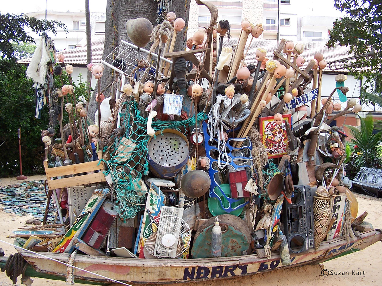 • une monumentale accumulation d’objets détournés, constituant les passagers de la pirogue,