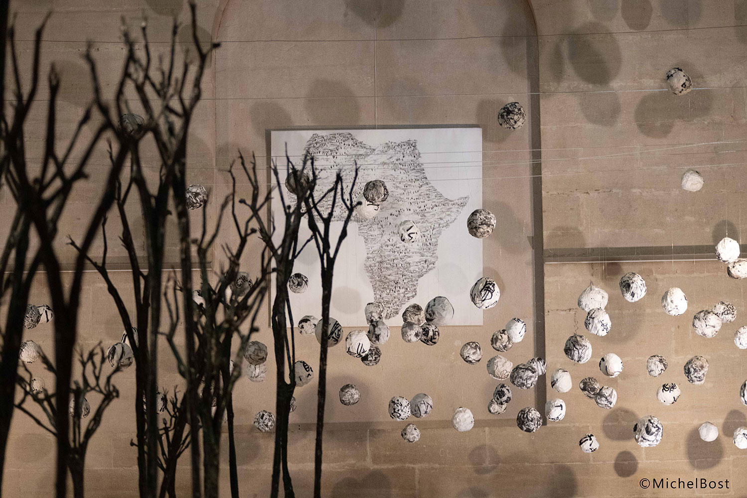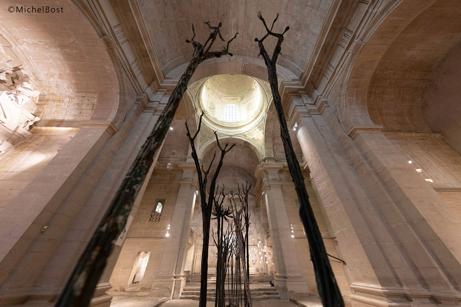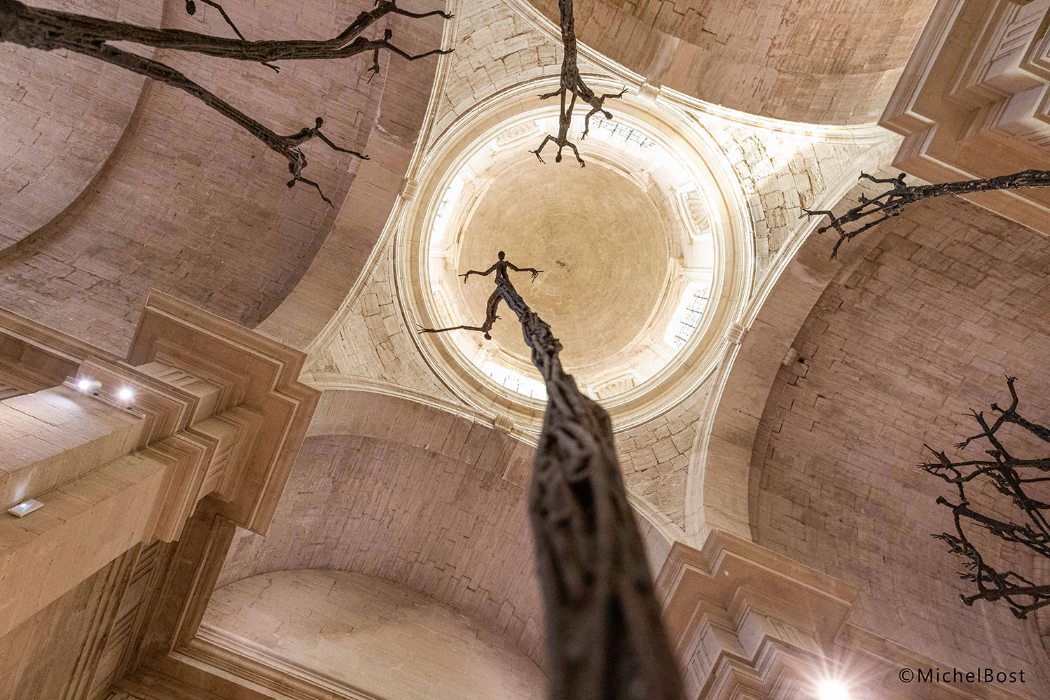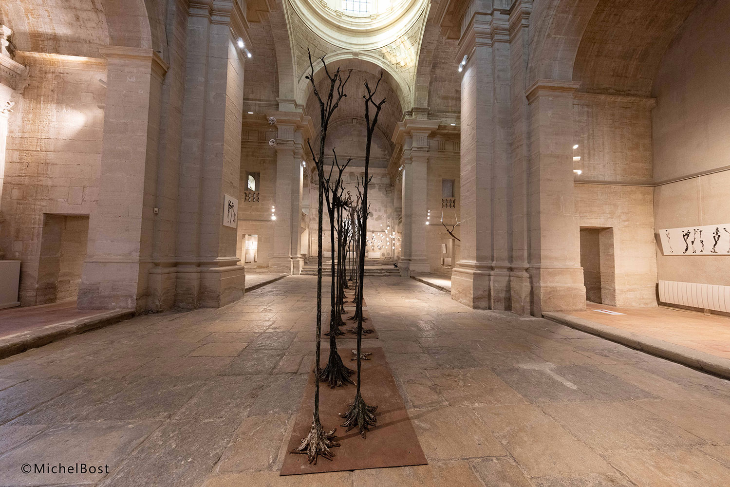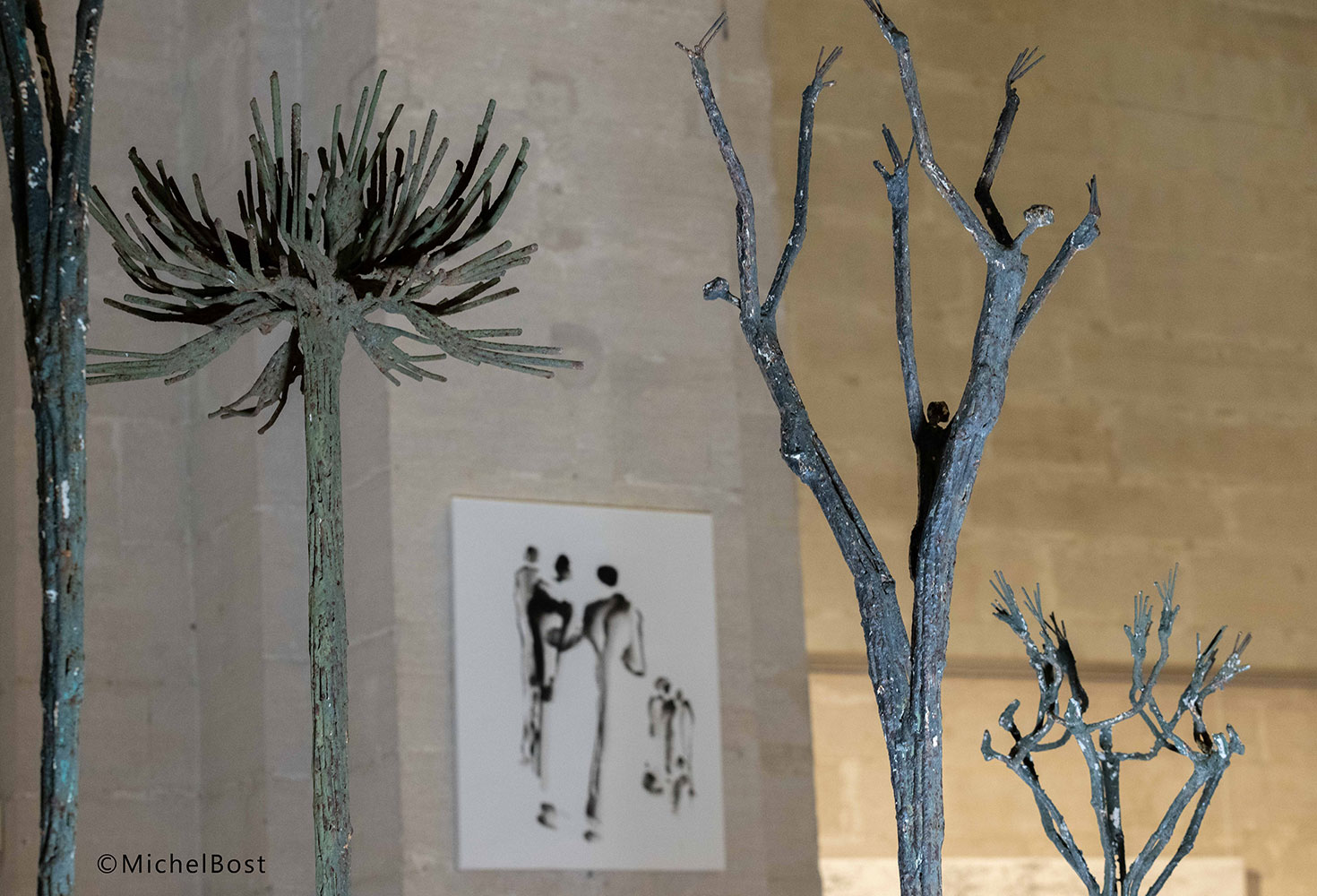 Présentée dans un lieu de spiritualité cette exposition, présentée par le Lions Club de Carpentras dans la Chapelle du Collège, réunit les œuvres de deux artistes, Ndary Lo et Sybille Friedel, qui traitent pour l’un de l’élévation, pour l’autre du mouvement des migrants. L’exposition n’a pu être visitée pour cause de pandémie mais une excellente couverture médiatique a permis qu’elle ne reste pas dans des caisses et qu’elle soit vue, et appréciée, par un public international. Les œuvres de Ndary Lo sont représentées par quelques-uns des arbres de la Muraille Verte, prêtés par la Fondation Blachère, œuvre que l’artiste avait définie comme destinée à « susciter de l’espoir », ainsi que par le majestueux Envol son ultime création.